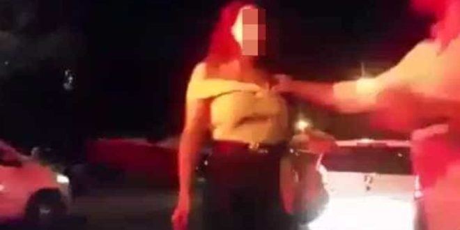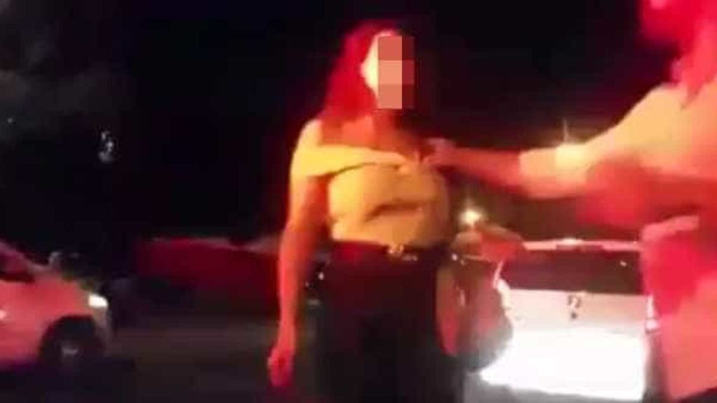 As imagens revelam que policiais tentaram algemá-la, após a mulher ter xingado os agentes e se recusado a ir em uma delegacia.