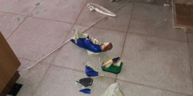 “Estava acontecendo um momento de adoração ao santíssimo sacramento e do nada entra um homem, tudo indica, com distúrbios, e vai diretamente ao presbitério e derruba as imagens dos anjos adoradores que estavam sob o altar, onde também encontrava-se o ostensório, que caiu”, relata o padre Valdir Vitorino.