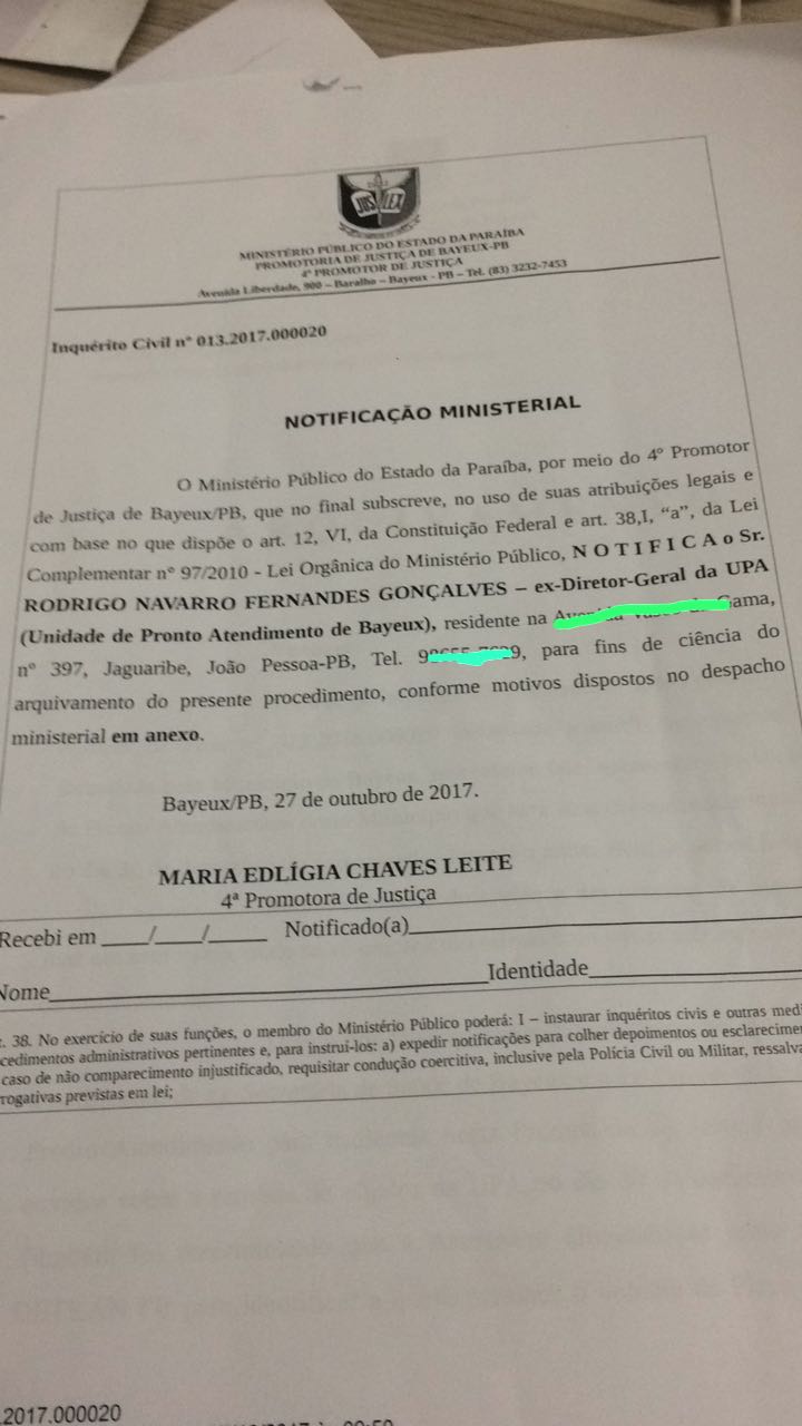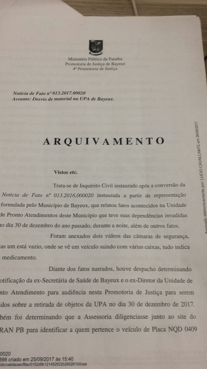 O Ex-diretor da UPA na gestão de Expedito Pereira, Rodrigo Navarro foi inocentado pelo Ministério Público da Cidade de Bayeux.