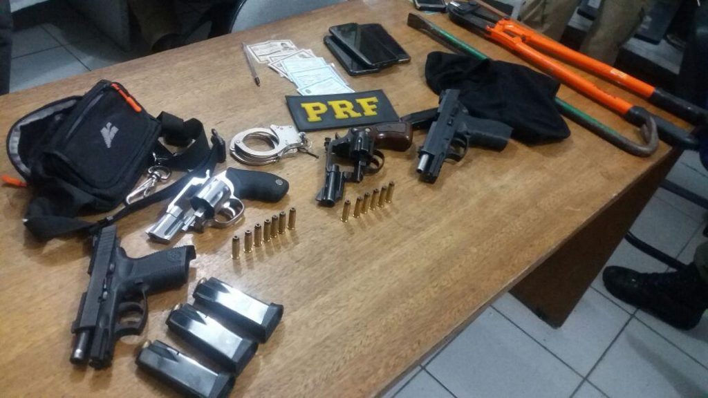 De acordo com informações do Inspetor Ed Porto, da PRF, com eles foram encontradas armas irregulares, duas pistolas e dois revólveres, um pé de cabra, um alicate industrial, além de um capuz preto.