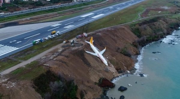 Um avião derrapou na pista do aeroporto da cidade turca de Trabzon e acabou pendurado num barranco perto do mar. A aeronave Boeing 737 da Pegasus Airlines tinha 168 pessoas a bordo, segundo informações da rede britânica BBC.