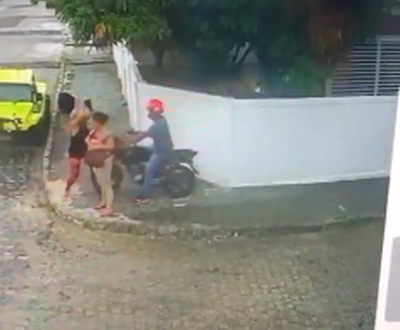 Uma mulher reagiu a um assalto de uma maneira inusitada na manhã desta sexta-feira (19). O caso foi registrado no bairro dos Estados, em João Pessoa, e foi flagrado por circuito de segurança de uma residência.