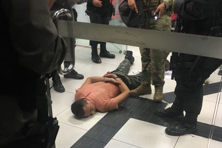 A dupla foi surpreendida pelos policiais dentro do banco tentando arrombar os caixas eletrônicos