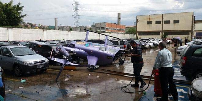 O helicóptero estava parado no heliponto da emissora, sem ninguém. A provável causa foi uma forte rajada de vento que derrubou o veículo no estacionamento d empresa.