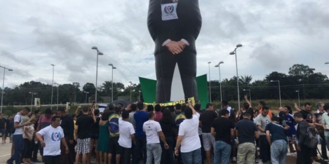 “Em parceria com os movimentos, conseguimos trazer um boneco inflável de Jair Bolsonaro, de 12m de altura, que circula todo Brasil e foi apelidado carinhosamente de Bolsozord, em analogia ao Megazord dos Power Rangers,” disse João Rufino, um dos organizadores do ato.