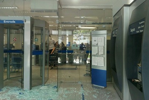 Cerca de oito homens fortemente armados renderam os dois vigilantes do banco e conseguiram roubar dinheiro do local