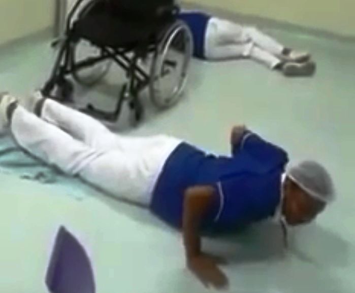 O vídeo mostra dois homens fardados, usando uma cadeira de rodas da instituição, dentro do hospital. Como de praxe em simulações do tipo que tomaram conta da web, os funcionários simulam que foram atingidos por um tiro e se jogam no chão. Depois, levantam e dançam animadamente. As imagens acabaram se espalhando nas redes sociais.