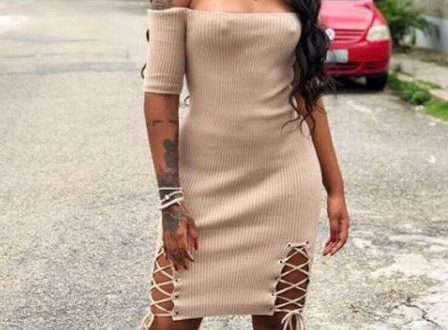 As últimas foram para mostrar o look, de vestido justo e sem sutiã, com a seguinte legenda: “Mulher de negócios”.