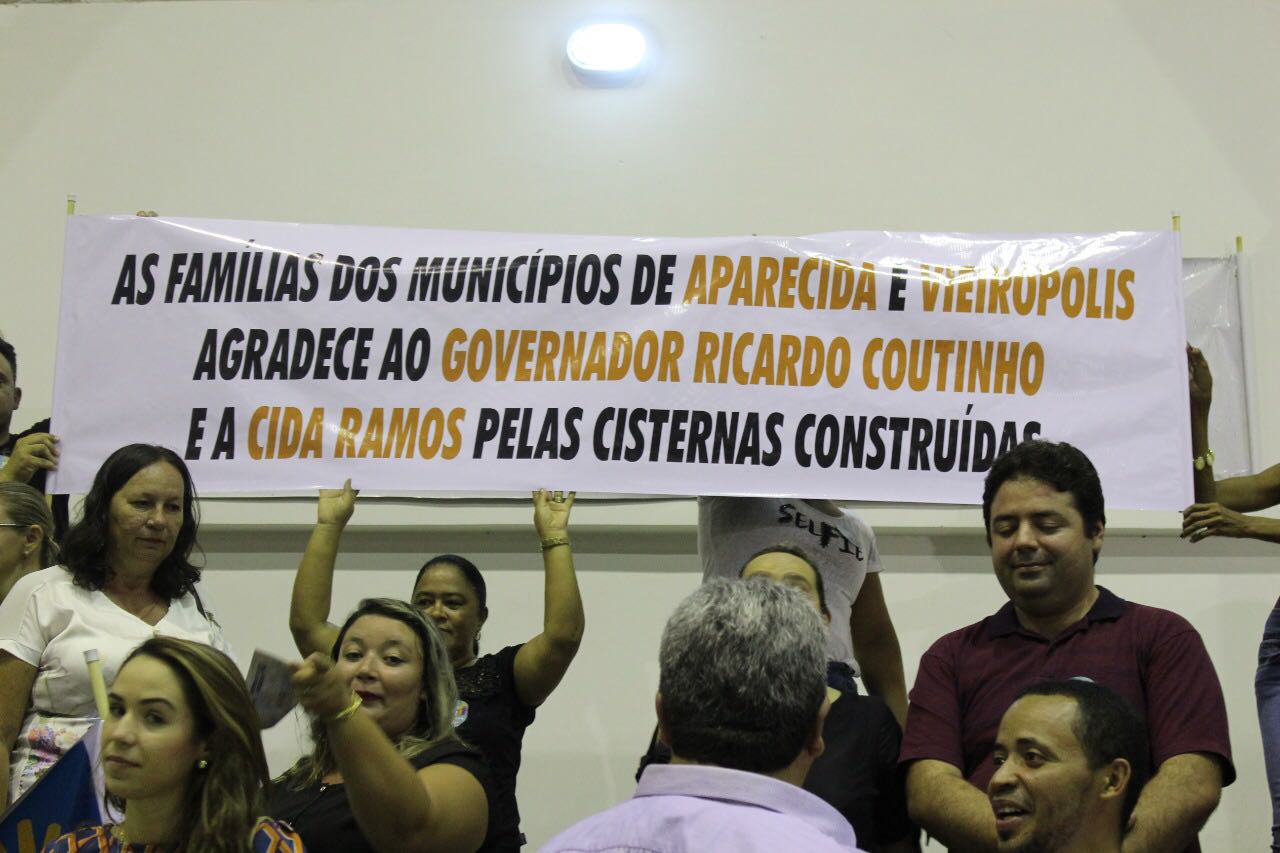 Moradores de ambas as localidade compareceram à plenária com uma faixa em reconhecimento aos serviços prestados, que dizia “As famílias dos municípios de Aparecida e Vieirópolis agradecem ao governador Ricardo Coutinho e a Cida Ramos pelas cisternas construídas”, em referência aos 1.953 reservatórios entregues.