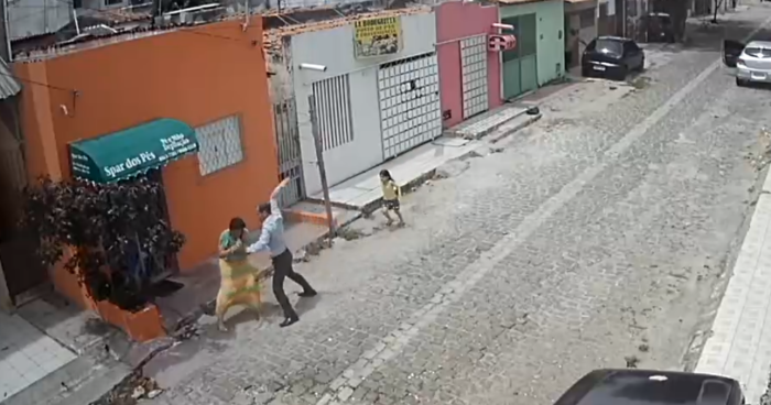 Um homem foi filmado agredindo sua ex-companheira no meio da rua e na frente da filha dela, de apenas 4 anos. O crime aconteceu em plena luz do dia no bairro Nazaré, Zona Oeste de Natal, no dia 25 de janeiro. Ele foi flagrado por câmeras de vigilância e o vídeo passou a circular nas redes sociais nos últimos dias.