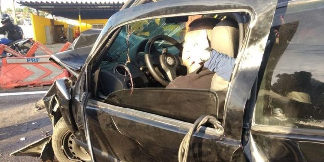 Com o impacto da colisão, a frente do carro ficou totalmente danificada. O motorista, por sua vez, ficou preso no veículo e foi atendido, inicialmente, por um profissional do Serviço de Atendimento Móvel de Urgência (Samu) que estava indo trabalhar e parou para prestar os primeiros socorros.