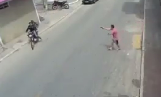 No vídeo é possível perceber que dois homens param na lateral da Praça São Francisco em um motocicleta, o passageiro desce e realiza o roubo, enquanto o condutor, com o veículo ligado, espera o cúmplice.