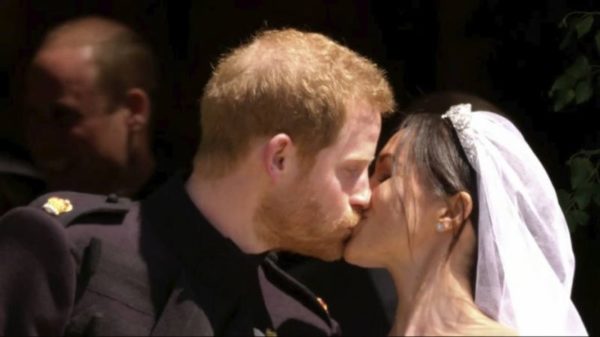 Após a cerimônia, os recém-casados se beijaram nas escadas da igreja, no momento mais celebrado de um dia que uniu o país, em plena crise existencial pelo Brexit.