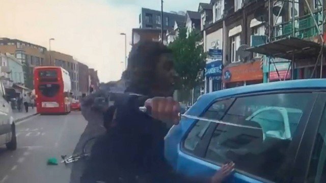 Um ciclista teve um ataque de fúria após quase ter sido atingido por um carro numa rua do bairro de Croydon, no sul de Londres. Um vídeo feito do ataque, na última quarta-feira, circula nas redes sociais e impressiona pela violência do ciclista.
