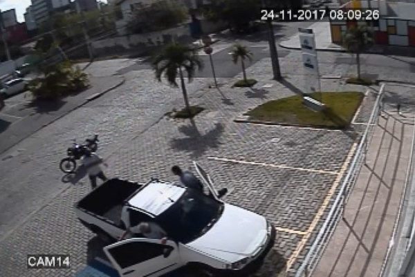 A ação do atirador dura menos de um minuto. Nas imagens, é possível ver quando o empresário e outra pessoa chegam na entrada do estabelecimento, que fica no cruzamento das avenidas Sapé e São Gonçalo, às 8h09 (horário local). Eles estacionam o veículo, uma picape, e saem. Segundos depois, um homem sozinho chega em uma moto e para atrás do carro.