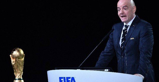 Presidente da Fifa, Gianni Infantino discursa na escolha da sede da Copa de 2026