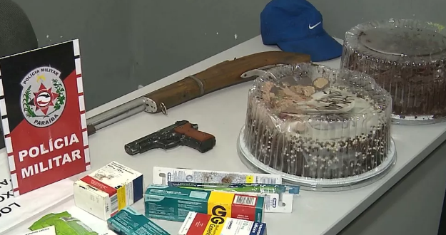 Com eles estava um bolo de aniversário que pode ser de uma das vítimas. Ainda em posso dos bandidos, a PM identificou dois carros, uma quantia em dinheiro, duas armas e várias caixas de remédio.
