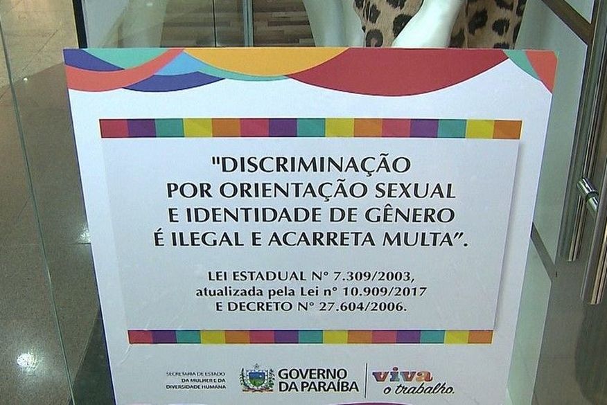 Esta última obriga os estabelecimentos comerciais e órgãos públicos da Administração Direta e Indireta, sediados no Estado da Paraíba, a afixarem cartazes contendo a seguinte afirmação: “Discriminação por orientação sexual é ilegal e acarreta multa, Lei estadual nº 7.309/2003 e Decreto nº 2760/2006.”
