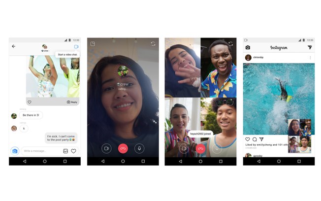Também é possível minimizar a videoconferência e continuar navegando normalmente no Instagram, realizando ações como enviar Directs, ver fotos no feed ou postar uma foto.