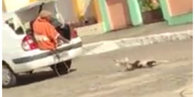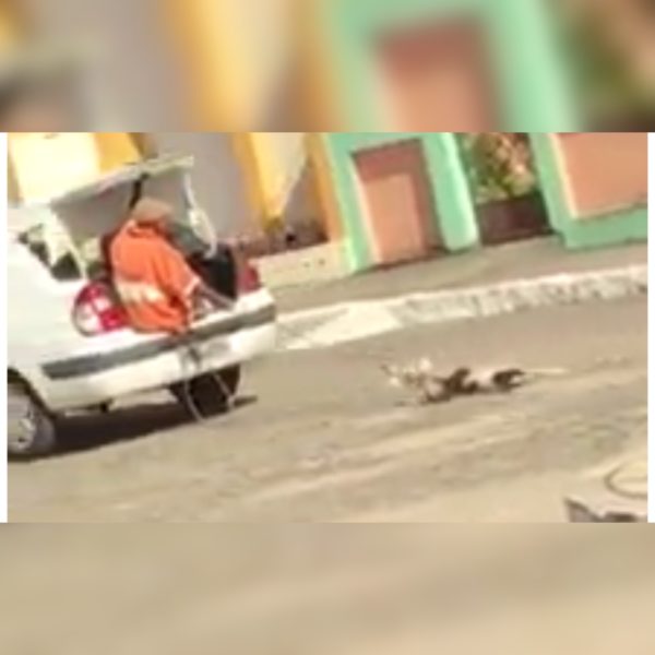 Um vídeo que circula na internet mostrando um homem na mala de um carro arrastando um cachorro por uma corda pelas ruas da cidade de Duas Estradas-PB, revoltou internautas.