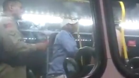 Nas imagens, é possível ver um senhor acompanhado por dois policiais e o cobrador dentro do coletivo, enquanto pessoas não identificadas ordenam sua saída. Um jovem que não aparece na filmagem chega a ameaçar: “vou matar ele”.