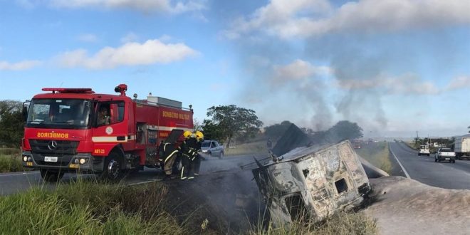 O Corpo de Bombeiros esteve no local para controlar o fogo e fazer o resfriamento da área. O veículo ficou completamente destruído pelas chamas.