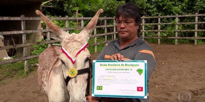 Ao comemorar 45 anos de criação do Programa Fantástico de Televisão da Rede Globo, neste último domingo (5), a emissora apresentou uma matéria que chamou a atenção dos gestores em todo o Brasil, uma investigação que foi exibida ao ar por sua equipe de reportagem para o mundo, para desvendar as premiações com Diplomas e Medalhas pela União Brasileira Divulgação – UBD a prefeitos, vereadores, secretários e gestores de modo geral, que um Jumento por apelido Precioso foi condecorado com o diploma e medalha de melhor prefeito que na justificativa do representante da entidade ele carregou Jesus e que é merecedor do título, alegou.