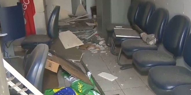Na ação eles arrancaram as câmeras de segurança do mercadinho ao lado, arrombaram a porta da agência e instalaram os explosivos. A agência bancária ficou destruída com o impacto. Já o correspondente bancário, teve sua porta arrobada e os móveis revirados.