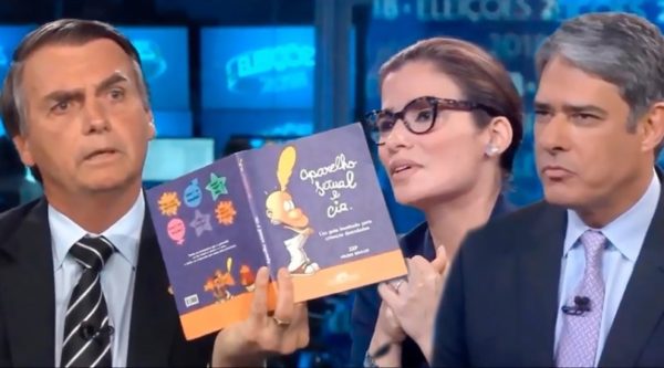 “Nossa questão lá em Brasília é pelo material escolar, o resto cada é feliz do jeito que é”, disse o deputado federal Jair Bolsonaro (PSC-RJ). “Isso”, concordou Inês Brasil, que já se mostrou conta o beijo gay em frente às crianças.