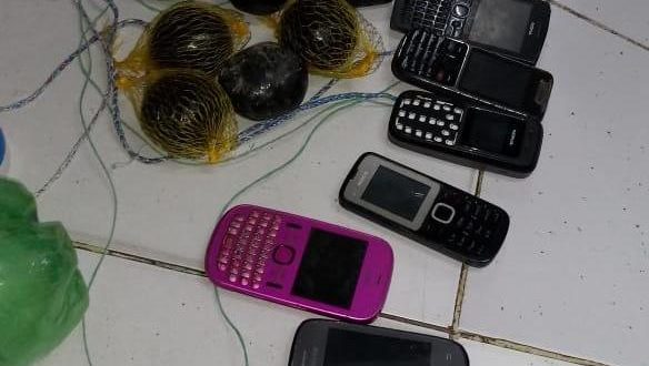 O instrumento foi encontrado na madrugada deste sábado (9) quando 13 celulares e uma quantidade de maconha foram jogados para dentro do presídio.