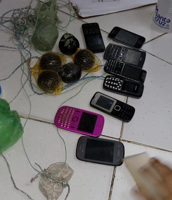O instrumento foi encontrado na madrugada deste sábado (9) quando 13 celulares e uma quantidade de maconha foram jogados para dentro do presídio.