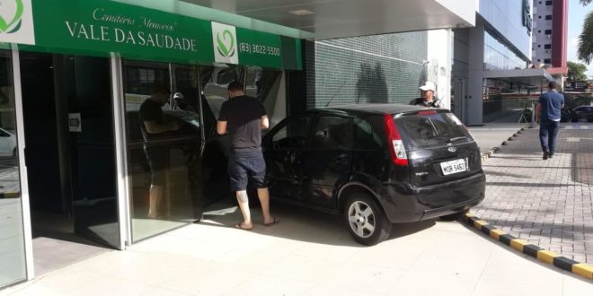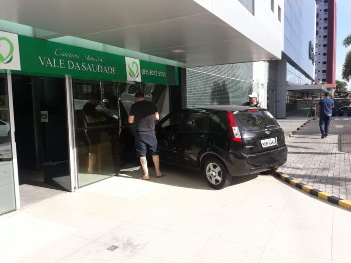 Segundo informações da Polícia, um dos carros atravessou o cruzamento sem parar e bateu na porta de um outro carro, fazendo com que ele girasse e invadisse um prédio.