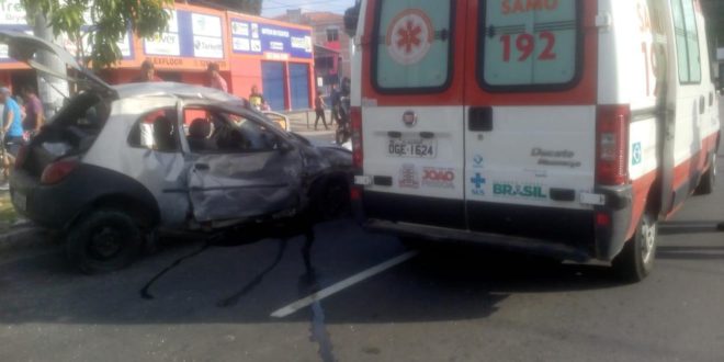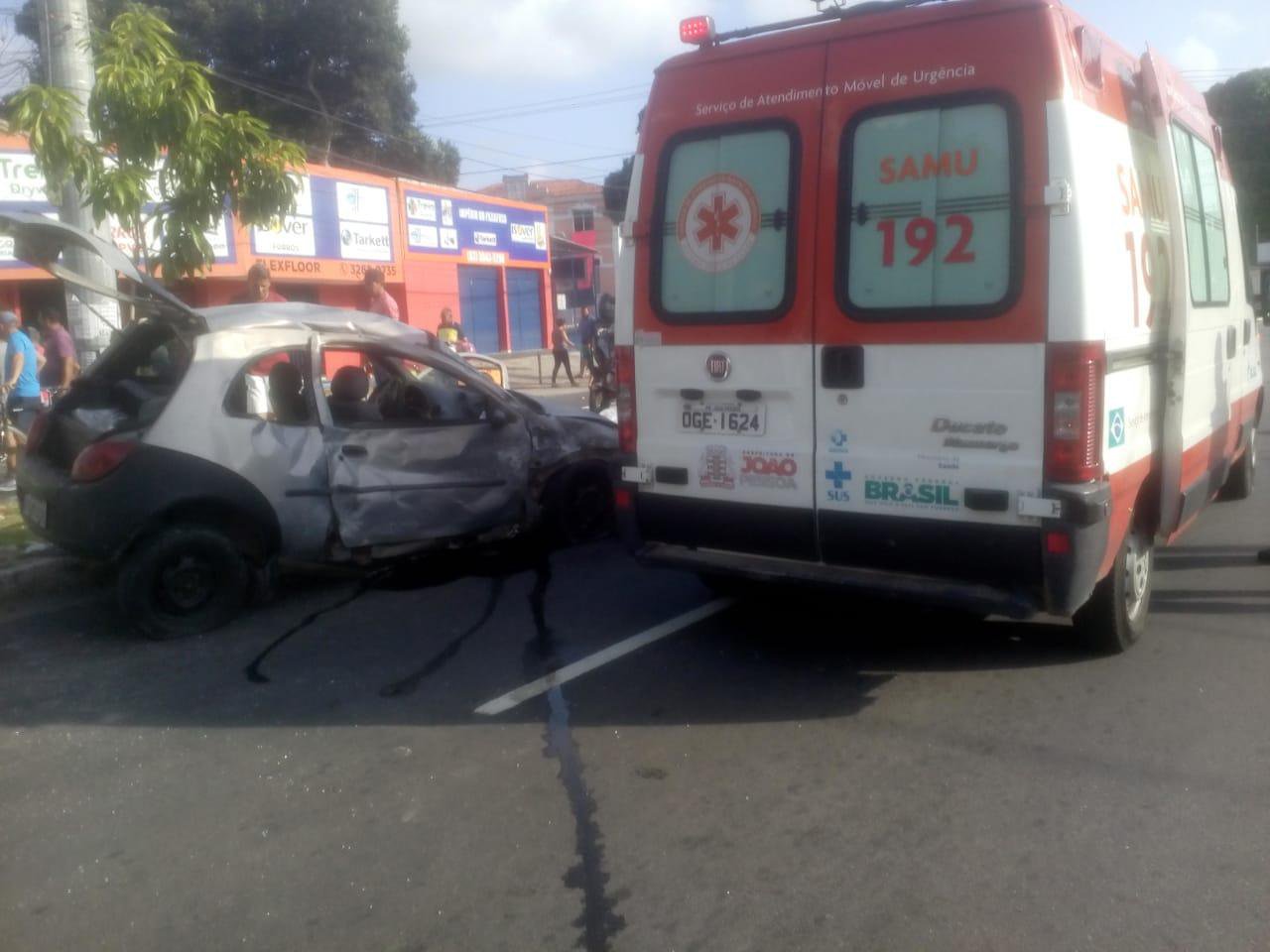 Uma batida entre um automóvel Ford Ka e uma motocicleta Honda Bros deixou um dos ocupantes da moto morto e pelo menos um ferido em estado grave no cruzamento entre as avenidas Dom Pedro II e Maximiano de Figueiredo, no Centro de João Pessoa, na tarde deste domingo (14).