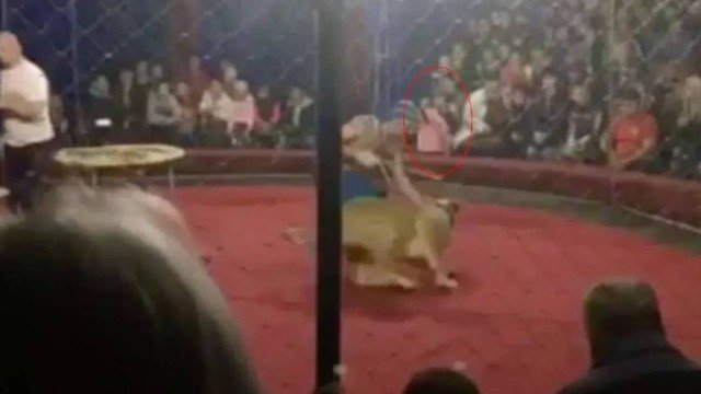 Um domador perdeu o controle de uma leoa durante apresentação em circo de Uspenskoye (Krasnodar, Rússia) e partiu com ferocidade para a plateia, separada do picadeiro por uma frágil tela de metal.