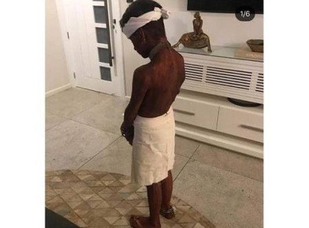 As fotos mostram que a criança, branca, usa maquiagem para simular o tom da pele negra. O menino, vestindo apenas panos brancos, usa imitações de correntes e grilhões, como aqueles usados em escravos no Brasil. A caracterização incluiu, ainda, “feridas” pelo corpo da criança.