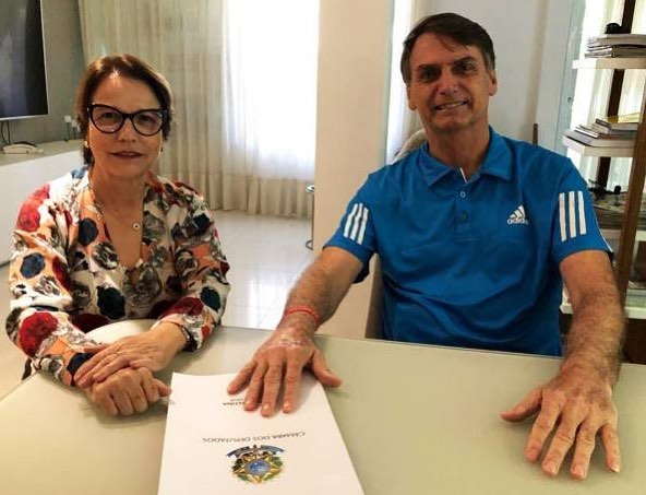 O presidente Jair Bolsonaro publicou em suas redes sociais nesta quarta-feira(07) a primeira mulher à compor um ministério em seu governo, é a deputada federal Tereza Cristina (DEM-MS) será ministra da Agricultura no governo Jair Bolsonaro.
