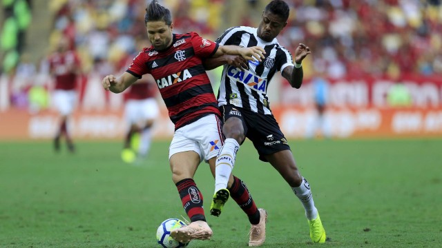 No Maracanã, o Flamengo começou pressionando o Santos, com a maior obrigação da vitória. O time visitante tratou de se postar na defesa e segurou o ímpeto inicial do mandante, empurrado por sua torcida. Mesmo com a volta de Diego, a dificuldade do Flamengo em criar as jogadas de penetração eram enormes. O time ficou o tempo todo rodando a bola e apenas Vitinho conseguia, em jogadas individuais e de fora da área, levar algum perigo.