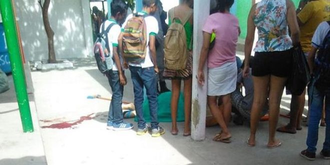 A vítima foi atingida com um tiro na cabeça e teve morte instantânea quando tinha ido levar uma sobrinha ao estabelecimento de ensino.