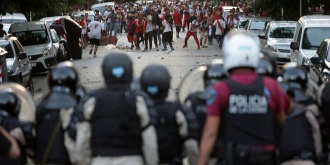 Ontem (24), logo na chegada ao Monumental de Nuñez, onde estava marcada a disputa, o ônibus do Boca foi atacado com pedradas e bombas de gás por torcedores rivais do River Plate.