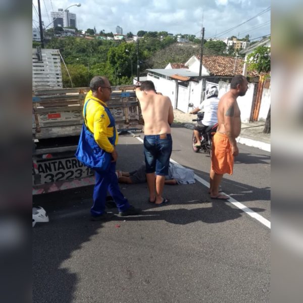Um idoso de 67 anos morreu na tarde desta segunda-feira (3), na ladeira do Rangel, em João Pessoa, ao bater na traseira do caminhão.