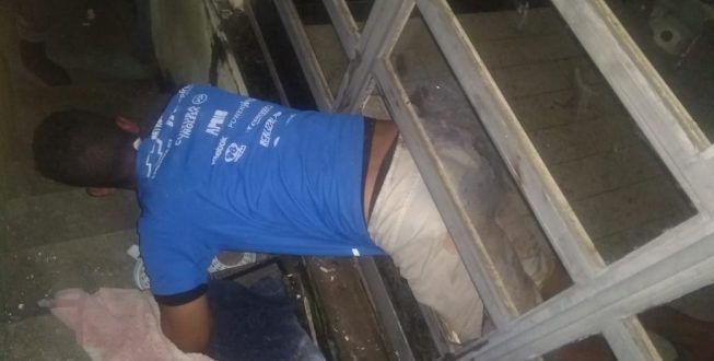 Segundo a Polícia Militar de Minas Gerais, o suspeito foi identificado como Fabrício Assis Lopes, de 25 anos. Nas imagens, é possível vê-lo ainda preso às armações de metal, enquanto os PMs aguardam a chegada dos bombeiros para retirá-lo da residência.
