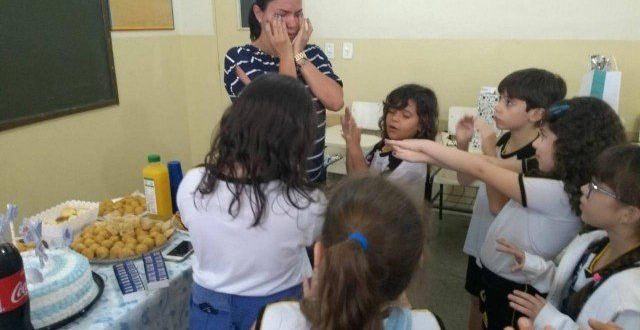 Natália afirmou que a instituição faz anualmente um evento no último dia de aula. A surpresa dos alunos, porém, ocorreu na véspera, pegando-a de surpresa.
