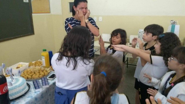 — Eu não estava nem um pouco desconfiada. Quando a coordenadora entrou na sala e avisou que os alunos podiam retirar as coisas das mochilas, eles começaram a tirar os presentes lá de dentro. Eu sou muito emotiva e comecei a chorar. Teve criança que começou a chorar junto.