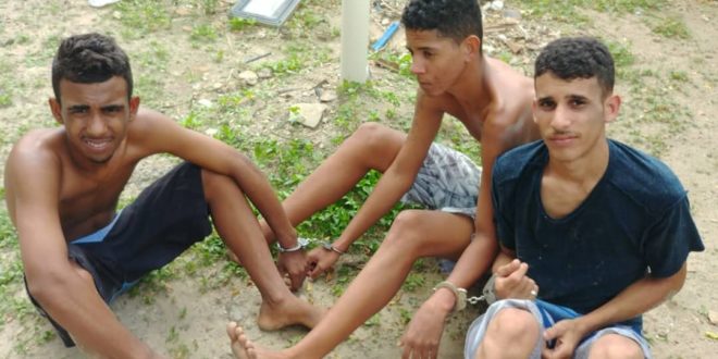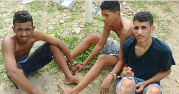O trio foi localizado em uma casa, usada como ponto de apoio ao crime. Dois dos suspeitos são maiores e um é menor de idade.