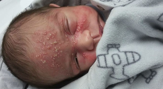 Bebê contrai herpes em beijo de visita e mãe faz o alerta nas redes sociais