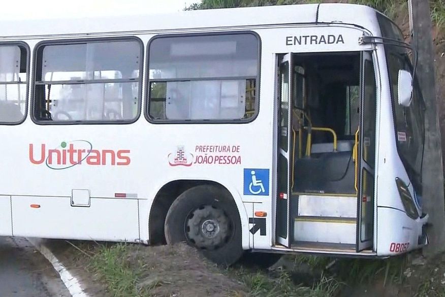 Quando o motorista do ônibus viu o caminhão trafegando em direção a ele, teve que desviar. Ele passou por cima de um canteiro e encostou em um poste, que acabou ficando danificado. O vidro acabou quebrando com o impacto.