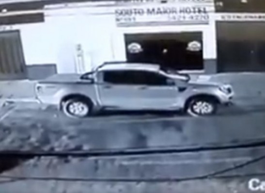 Câmeras de segurança instaladas em frente ao hotel registraram a ação criminosa, que aconteceu às 3h17. Um carro branco que passava pela rua parou ao lado do veículo do cantor Alcymar Monteiro. Uma mulher desceu do carro e conseguiu destravar o veículo roubado com muita facilidade.