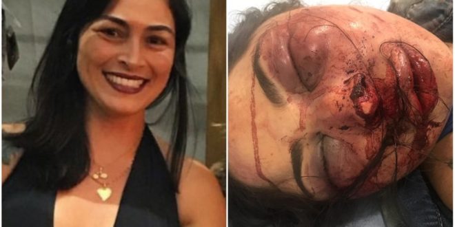 O rosto da vítima, Jane Cherubim, ficou bastante machucado, mas ela está fora de perigo. Ela está internada no Hospital de Carangola, em Minas Gerais.