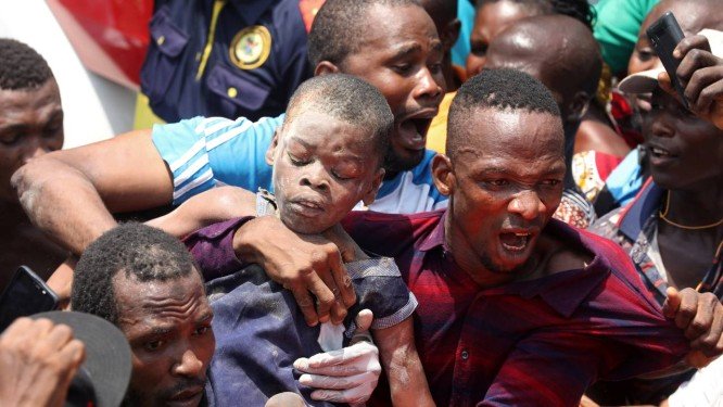 Um menino de dez anos conseguiu ser retirado completamente coberto de poeira e sem ferimentos visíveis, levando a multidão ao redor a celebrar efusivamente. Logo depois, outra criança saiu dos escombros.