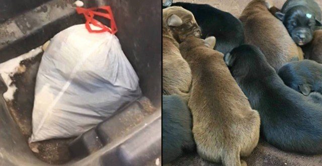 Na tarde do último dia 28, a polícia local foi acionada por moradores de Marshfield, que relataram terem ouvido filhotes de gatos chorando dentro de uma lixeira. Ao chegar ao local, os agentes descobriram que, na verdade, o choro vinha de oito cães recém-nascidos, que haviam sido abandonados dentro de uma sacola de lixo.